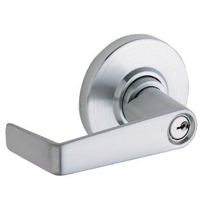 Schlage AL53SAT609 Antique Brass AL-Series Saturn Keyed Entrance/Office Door Lever Set Less CylinderKeyed Entrance Door Lever Lock from the Saturn CollectionPushing and turning a button locks outside lever requiring use of key until button is manually unlocked. The push button locks outside lever until unlocked by key or by turning inside lever. Latch: 1 1/8" x 2 1/4", Square corner faceplate, 1" housing diameter, 1/2" throw Strike: 1 1/4" x 4 7/8", ANSI, Square corner, no boxCylinder Sold Separately: 6-Pin solid brass, keyed 6-pin, C123 keyway (option above covers the cost of the cylinder)Door Range: 1 3/8" - 1 7/8".../ Schlage AL53SAT609 Antique Brass AL-Series Saturn Keyed Entrance/Office Door Lever Set Less Cylinder / Door Entrances