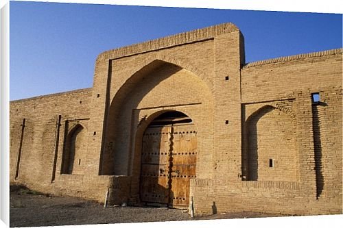 36x24 Canvas Print, White Sides. , Iran, Miyan Dasht caravanserai, Semnan Province. Iran, Miyan Dasht caravanserai, Semnan Province. The entrance gate, - this is a large and impressive example of a Saravid period caravanserai. It stands beside the Tehran road, about 110km east of Shahrud. It is a massive stone and brick structure. Chosen by AWL Discover Images. Photo printed on archival quality canvas. Laminated. Canvas print stretched and.../ Canvas Prints of Iran, Miyan Dasht caravanserai, Semnan Province from AWL Discover Images / Door Entrances