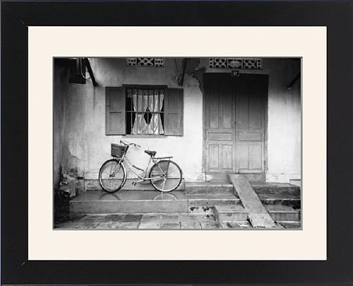 14x11 Framed Print, Black Satin Frame Off-White Digital Mat. , Hoi An Vietnam,. Hoi An Vietnam, House with Bicycle. Chosen by Danita Delimont. 14x11 wooden frame with digital mat and RA4 print. Finished back including brown backing paper, hanging bracket and corner bumpers. This item is shipped from our American lab..../ Framed Prints of Hoi An Vietnam, from Danita Delimont / Door Entrances
